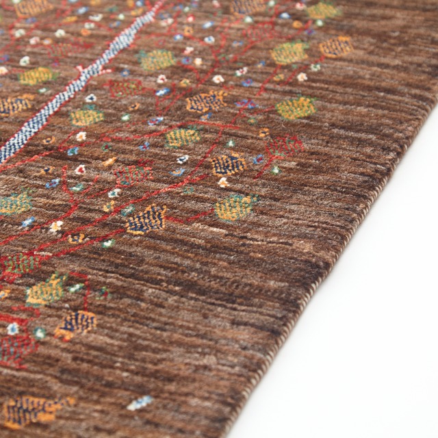 無染色の羊の原毛色を中心に織られており、遊牧民に伝わるモチーフを中心にギャッベの魅力を上質に表現しています。